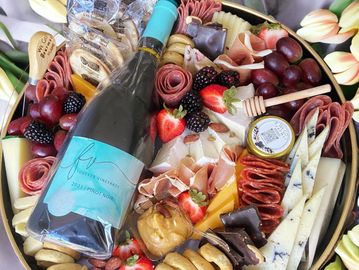 Our exquiste CharCuterie served in a Stylish Board. Adding a Wine or Champagne Bottle is Always a Good Idea. *All Boards Are Differents Starts at $195